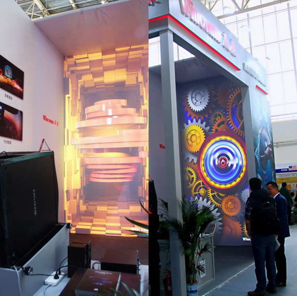 該投影機在本次展會上承擔了贏康展位3D投影秀的投映工作,真實的畫面色彩和栩栩如生的動態影像吸引眾多參觀者駐足觀賞。