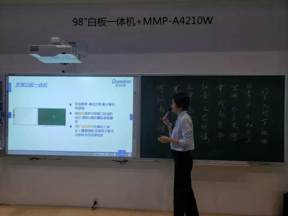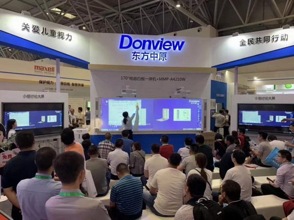 本次展會,“人氣王”當屬170寸雙通道電容白板一體機,它是東方中原自主研發的全球最大雙通道電容白板一體機解決方案,擁有超大尺寸的屏幕同時不失細膩精致,將先進電容觸控技術與電子白板結合,使得各項技術優勢都能在大尺寸上充分發揮,遠高于紅外觸控效果。除此之外,Donview東方中原還帶來了86″電容一體機以及集合了教育、云端、顯示、交互四位一體的智慧班牌等。在多種尺寸的優勢下,東方中原為教育行業提供了眾多可選的系統性解決方案,可根據不同的場景需求實現輕松便捷的應用和管理。不僅滿足了當下及未來教育用戶的使用需求,同時也為師生帶來了領先的技術體驗,為互動課堂增添了無限樂趣,也充分展示了東方中原白板一體機在應用和交互式教學領域的技術實力。