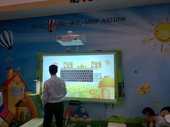 除了關注基礎教育、高等教育,東方中原也相當重視幼兒教育。在未來幼兒教室解決方案體驗區,東方中原展示了可實現前維護的101寸AR白板一體機、75寸幼兒白板一體機。它們采用紅外觸摸技術,無需專用筆操作,納米鋼板材料的面板設計保證了書寫的流暢,且抗光性能好,同時防水防塵,且支持手勢擦除,可手勢識別,具備免驅動、免校正、定位精度高、反應靈敏等眾多特點,并配有幼兒教學益智游戲盒,能夠完全滿足幼教用戶的需求。