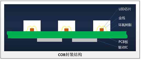 COB:是Chip On Board的縮寫。意思是: 板上芯片封裝技術;即將芯片用導電或非導電膠粘附在互連基板上,然后進行引線鍵合實現其電氣連接的半導體封裝工藝。簡單來說,就是把發光芯片直接貼裝在PCB板上,不需要支架和焊腳。與傳統的SMD做法相比,COB封裝省略LED芯片制作成燈珠和回流焊兩大流程。