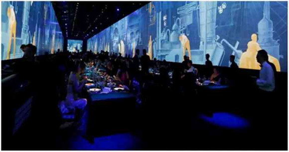 DHN光影餐廳是以投影及智能交互為手段的新型感官餐廳,將傳統(tǒng)餐廳的單一味覺體驗(yàn)提升為觸覺、視覺、味覺等全方位的感官體驗(yàn),顧客在享用美食時(shí),還能沉浸于“主題”的樂趣中,進(jìn)行多種智能互動(dòng),享受高科技帶來的新奇與震撼。