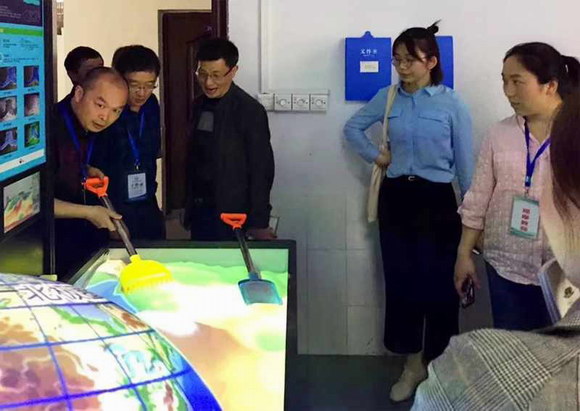 AR地理沙盤是一款寓教于樂的教學(xué)設(shè)備,可以實現(xiàn)投影的成像隨著沙堆高度的改變而呈現(xiàn)不同的地形地貌,還可模擬降雨、火山爆發(fā)等地理活動。學(xué)生們在“堆沙子”的過程中,輕松學(xué)習(xí)等高線、分水嶺、集水區(qū)等知識點內(nèi)容。