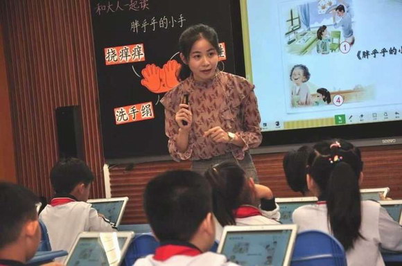 觀摩課環(huán)節(jié),岑老師帶來(lái)了一年級(jí)語(yǔ)文《和大人一起讀:胖乎乎的小手》,并結(jié)合希沃易課堂截屏推送課件、共享圖片資源、主觀評(píng)價(jià)、推送課外閱讀資料等交互功能,激發(fā)了學(xué)生讀、說(shuō)、演的學(xué)習(xí)興趣。