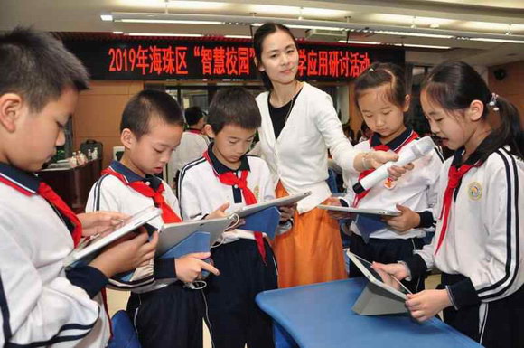 4月18日,2019 年海珠區(qū)“智慧校園”課堂教學(xué)應(yīng)用研討活動(dòng)在海珠區(qū)第三實(shí)驗(yàn)小學(xué)展開(kāi)。海珠三小的骨干教師基于希沃易課堂帶來(lái)了四場(chǎng)別開(kāi)生面的觀摩課,并由專(zhuān)家?guī)?lái)以“智慧課堂”為主題的講座。