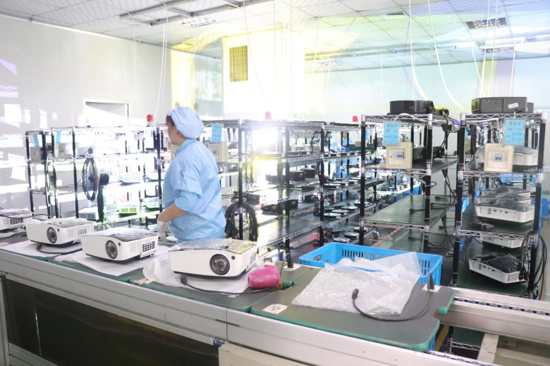 公司現有員工580人 擁有組裝、測試、老化、一貫化作業的高效率投影機組裝線7條,各類設備儀器400余臺套,具備每年100萬臺數字投影機生產能力。