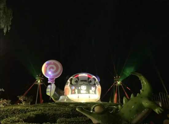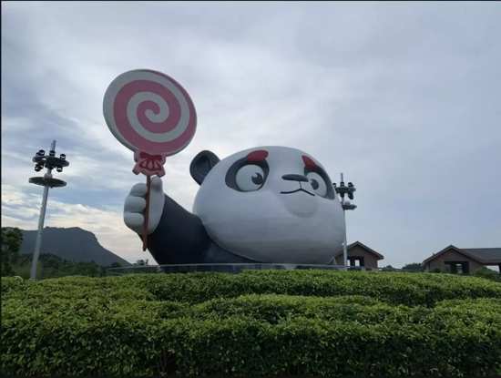 其中 “晃晃之旅親子樂園”是以熊貓晃晃等動物人設為主題的兒童夢幻樂園。為了提升度假中心的檔次,打造園區新標識,園區入口處高12米、寬18米的熊貓晃晃大型雕塑利用投影、燈光激活,實現趣味橫生的雕塑光影秀。