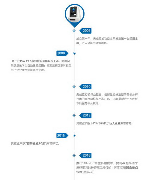 2005年,成立第一年,奧威亞成功自主研發出第一臺錄播主機,進入全新的藍海市場。