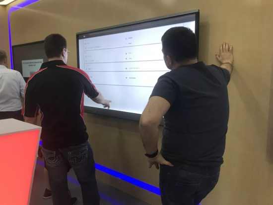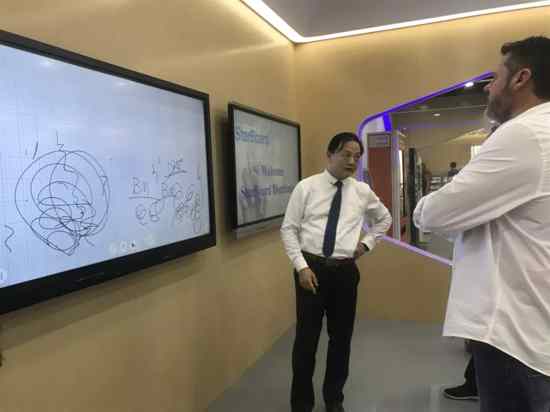 在參觀期間,歐洲同事對公司產品的實用性及操作性非常感興趣,由外貿經理依次對產品給他們進行了詳細的講解。從紅外觸摸方案與電容觸摸方案的對比,到電子白板、觸摸一體機、白板一體機、激光投影機等產品的演變歷程、功能、特性的介紹,最后對大家提出的問題進行了一一解答。