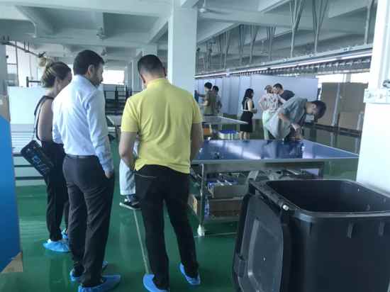 隨后,許總帶領大家來到產線進行參觀,所有的生產、安裝、檢測、打包等各流程都嚴格按照質量標準有條不紊的進行,確保全部設備高質量出廠。參觀期間,工廠負責人針對每個產品的加工環節為大家進行詳細的介紹、講解,讓他們深刻的了解到艾博德每一臺成品機器背后的工藝。