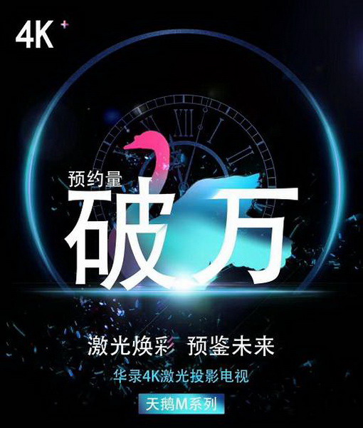 繼5月華錄召開主題為“鵠志,觀視界”4K激光電視新品發布會幾周以后,華錄4K激光電視天鵝Swan M,取得預約量破萬的成績。