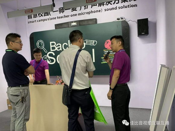 其中,集“一師一麥擴聲解決方案 、吊嘜AI智能擴聲解決方案、教育健康智慧照明解決方案”的智慧教室應用方案區,為大家多方位的展示了產品在特定場景應用中的功能特點、個性創新亮點,瞬間吸足眾人目光,前來參觀交流,充分詮釋佳比在智慧教育領域里的實力。