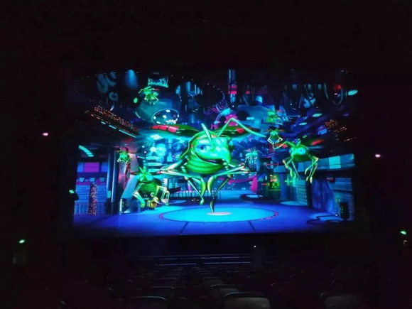同樣是在光影奇境體驗區的“4D夢工廠”動感特效影廳,采用2臺PH3501QL工程機打造了23米巨幅弧幕,跟隨4D動感座椅的晃動,領先的4K級3D技術,能夠欣賞到呼之欲出的立體影像。搭載的頂級DCI影院色彩,更能完美真實地呈現電影中所要呈現的所有色彩。
