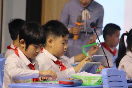 比賽現場,老師們靈活運用著希沃易課堂進行授課,將更多的時間交給學生,讓學生自主的去學習,通過學生端設備與同學實時互動,運用即時測評、資源共享等功能,實現翻轉課堂,提升教學的體驗性。
