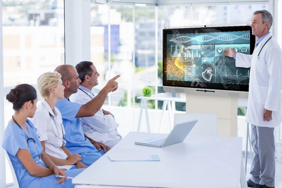 在PruittHealth的會議室中,newline讓護士與醫師溝通更為順暢,討論某個客戶的近況時,資料清晰顯示在屏幕上,醫師用手指直接勾畫重點信息,并進行標注講解;護士則可以分享日常工作情況,手機或平板電腦中的照片等資料可隨時推送至大屏,會上與醫師探討;討論成果與全新想法均可隨時開啟newline協同白板功能進行記錄,方便會后保存與分享。