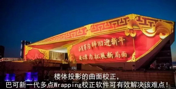 現代建筑因設計原因外表面多不規則,這給投影畫面校正帶來了較大挑戰。本次太原項目就面臨著這樣的挑戰:建筑體多、外表面多為異形曲面、體量大。不過作為新一代巴可激光投影的標配,Barco Pulse投影軟件平臺的多點Wrapping校正功能,可實現多點實時復雜幾何校正,有效精確解決異形投影的技術難題。