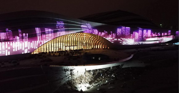 而絲路中心的燈光秀也包含心血。今年的投影主題就有一個(gè)好聽(tīng)的名字:“云動(dòng)翼深情”,這個(gè)浪漫的主題取自詩(shī)經(jīng)·爾雅中的詩(shī)詞“風(fēng)瀾云動(dòng)”。“云動(dòng)”即是借喻建筑外觀“流動(dòng)白云”的特點(diǎn),通過(guò)畫(huà)面演繹展現(xiàn)“流云”對(duì)腳下這片土地最深沉、最厚重的摯愛(ài)。無(wú)論“流云”飄蕩在何處,心就在這里,根就在這里。同時(shí),翼也是河北的簡(jiǎn)稱,詮釋了對(duì)河北美好的期望與愿景。