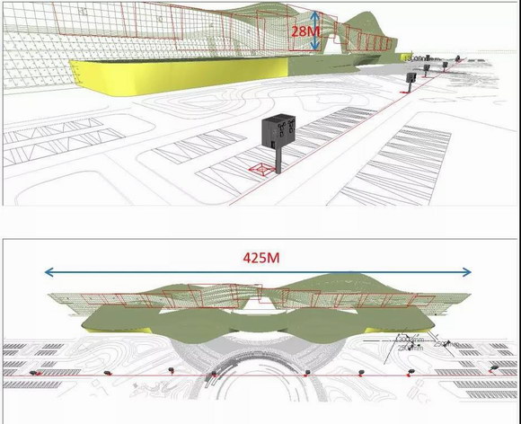 所以我們現(xiàn)在所欣賞到的燈光秀實(shí)際上是利用34臺(tái)31,000流明的松下激光機(jī)PT-SRZ31K投影實(shí)現(xiàn)的,畫(huà)面全長(zhǎng)425米,比一期增加了橫向100米的空間視野。仿佛一個(gè)流動(dòng)的畫(huà)軸,效果頗為震撼。