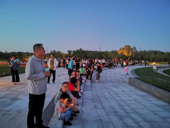 可以看到天還沒(méi)黑,絲綢之路國(guó)際文化交流中心前的廣場(chǎng)上就已經(jīng)聚滿了人,大家都在等待著驚艷的一刻。