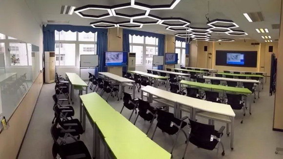 別出心裁的小組討論式設計,讓老師可以多方位地進行授課,既能“集體聽講”,也能“分組討論”,更讓師生之間輕松進行互動交流,配備空調、燈光、多媒體等智能設備,讓廣州大學具備了明亮、舒適、科技、便捷的上課環境。