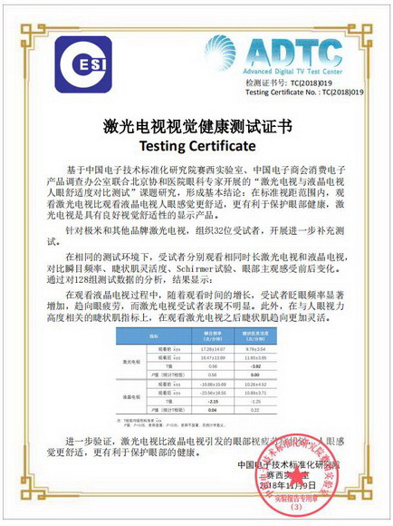 隨著極米激光電視、智能投影等產(chǎn)品在市場(chǎng)上的快速普及,極米產(chǎn)品的護(hù)眼效果不但得到了大量消費(fèi)者的認(rèn)可,也得到了權(quán)威機(jī)構(gòu)的研究驗(yàn)證。由中國(guó)電子技術(shù)標(biāo)準(zhǔn)化研究院賽西實(shí)驗(yàn)室、中國(guó)電子商會(huì)消費(fèi)電子產(chǎn)品調(diào)查辦公室,聯(lián)合北京協(xié)和醫(yī)院眼科專家開(kāi)展的“激光電視與液晶電視人眼舒適度對(duì)比測(cè)試”課題研究中,明確表示在標(biāo)準(zhǔn)視距范圍內(nèi),觀看激光電視比觀看液晶電視人眼感覺(jué)更舒適,更有利于保護(hù)眼部健康,激光電視是具有良好視覺(jué)舒適性的顯示產(chǎn)品。而在此次課題研究中,極米激光電視皓·LUNE 4K也成為了首批獲得《激光電視視覺(jué)健康測(cè)試證書(shū)》的產(chǎn)品。