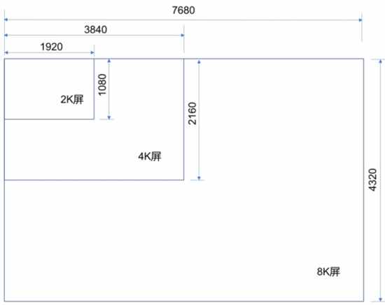 圖1: 2K、4K、8K顯示屏的分辨率