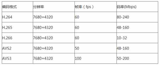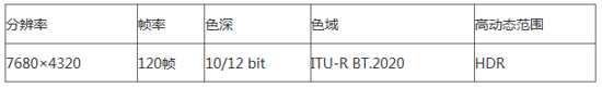 表2: 8K超高清視頻的特性