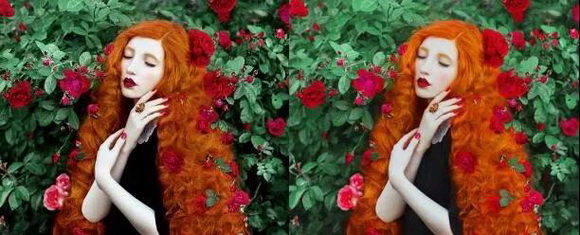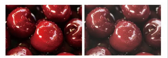 LP50UM的紅色表現(左),傳統激光投影機的紅色表現 (右)