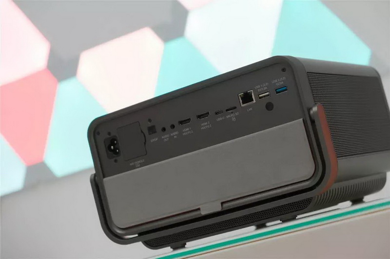 優派X10-4K配備的接口非常充足,HDMI(HDCP),USB type-C,Audio-in(3.5mm), USB type-A,SD Carde,RJ45網控接口,Audio out(3.5mm),S/PDIF。幾乎覆蓋所有的需求。值得一提的是,接口的規格以及供電能力都在接口上做了標注,這點真的很貼心。