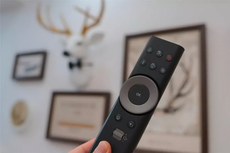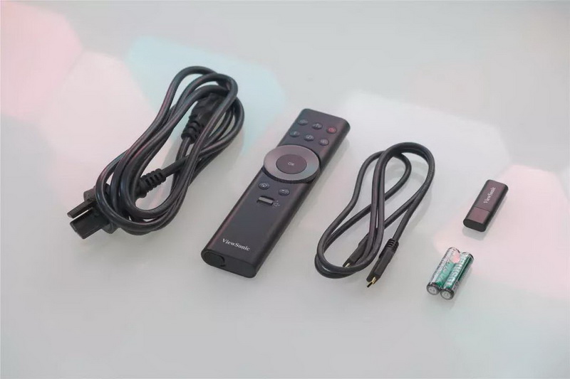 配件方面,除了剛剛提到的USB雙頻WiFi,提供了一根電源線,一根雙頭Type-C數據線,以及一個造型別致的遙控器,采用7號電池供電,在點擊時會有背光。