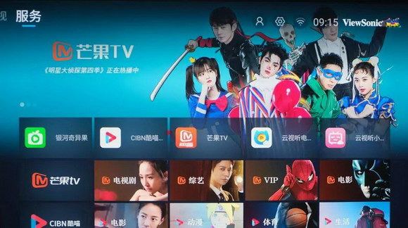 優派X10-4K內置的是芒果牛奶系統,不過主流的影視APP都也已經預裝好了,使用起來還是很方便的,交互也做的很簡潔,老人使用也沒有什么難度。
