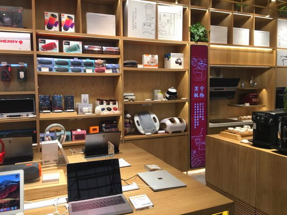 因此實體門店的角色不該局限于單純賣貨,而是營造氛圍、打造場景體驗,從而刺激消費。正如南京新街口的蘇寧極物店,從刷臉支付、無人咖啡,處處顯露科技感和時尚感。百貨、家居、3C等多個類目的產品,以奇特又整體的方式組成店內風景。不僅是有需要的顧客會入店揀選,人們喜歡在這里“殺時間”,沿著貨架上的電子屏邊逛邊看,互動感受精選商品背后的故事,體驗品牌傳遞的美好生活理念,不知不覺就被這些極致好物所吸引,最終完成消費買單。