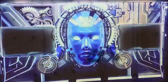該方案由2臺麥克賽爾MMP-D7010UB激光工程投影機向一面墻投射融合畫面,內容包括滿賦科幻感的臉部變化和抽象的人類跑步動畫,給人帶來了與眾不同的氛圍,極大地增強了視覺沖擊力,趣味性十足,且樹立了商場全新形象。