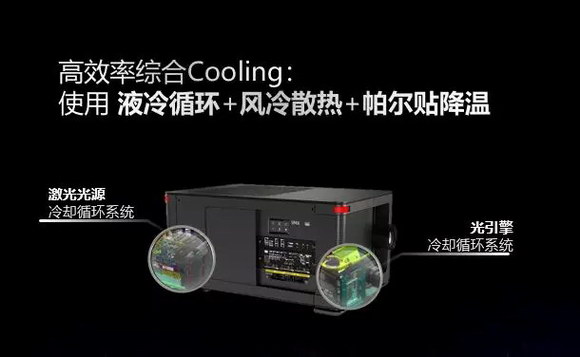 巴可Barco S4第四代激光放映機,傳承了巴可Barco一貫的高效率設(shè)計,采用液冷+風(fēng)冷+帕爾貼的綜合冷卻散熱系統(tǒng),保證了激光光源始終工作在適宜的溫度環(huán)境下,而S4放映機可以運行在高達40℃的機房環(huán)境中。