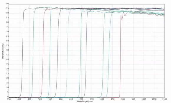 美容儀器濾光片其原理是強脈沖氙燈發出寬光譜光,通過采用特定的長波通濾光片濾除紫外光并選擇用于治療范圍的標準譜段,作用于人的皮膚組織,達到美容治療的效果。其相關濾光片的膜系設計與制備工藝的難點在于此類濾光片的高通帶透射率、寬截止帶、高陡度的要求。