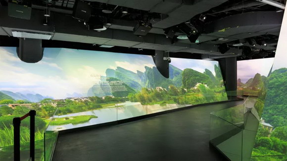 它,參與了一個,國家領導人出席并發表講話。CCTV及各大衛視爭相報道,匯聚萬千海內外觀眾的項目;它,藏在層層紗幔之中,用光影造了一個綺麗夢幻的景觀。《十八學士圖》《圓明園四十景圖》,在它的投射下慢慢鋪開,時光流轉如漫步在畫中。又幻化出綠水青山、金黃稻田,折折疊疊,行走其間如于崇山峻嶺之間。從魯家村到塞罕壩,長城到長白山,12處山水藍圖躍然眼前。