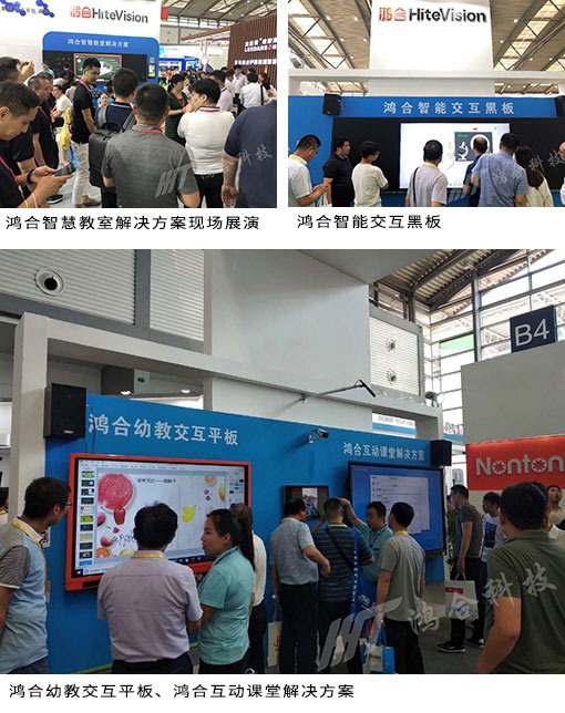 除鴻合智能交互黑板外,作為展會重要參展廠商,鴻合科技還展出了全系列教育產品,包括鴻合智能交互平板、鴻合智能交互白板一體機、鴻合幼教交互平板、鴻合激光投影機、鴻合視頻展臺、鴻合錄播、鴻合電子書包等。另外,鴻合科技還重裝推出面向不同應用場景的綜合解決方案,如鴻合校園數字媒體發布系統、鴻合雙屏互動展示方案、鴻合互動課堂解決方案等成為整個展會中令人矚目的焦點。