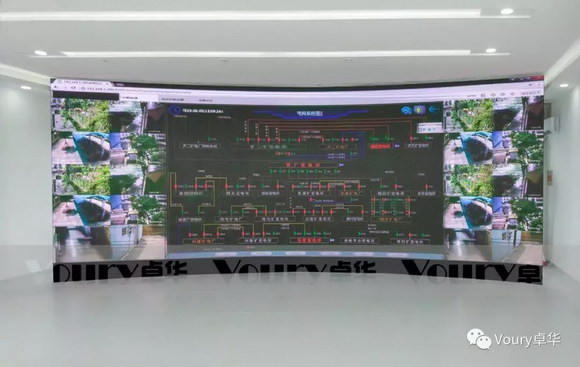根據(jù)華聚能源調(diào)度中心現(xiàn)場情況,大屏幕顯示系統(tǒng)采用2.5°弧形拼接而成,顯示屏整屏長9.12米,寬2.88米,共26.26平方米拼接規(guī)模。Voury卓華P1.8微間距LED弧形屏拼接成的圓弧具有良好的過渡性,弧度自然,造型美觀,畫面完美、連貫,具備更寬廣的視角及自然舒適的視野,保證了完美的顯示效果,獲得了用戶好評。大屏幕顯示系統(tǒng)主要由微間距LED顯示屏、圖形拼接控制系統(tǒng)、LED屏體安裝支架、大屏幕控制軟件等部分構(gòu)成,通過它可以將多路計算機信號、多路視頻信號在微間距LED大屏幕上進行動態(tài)綜合顯示。