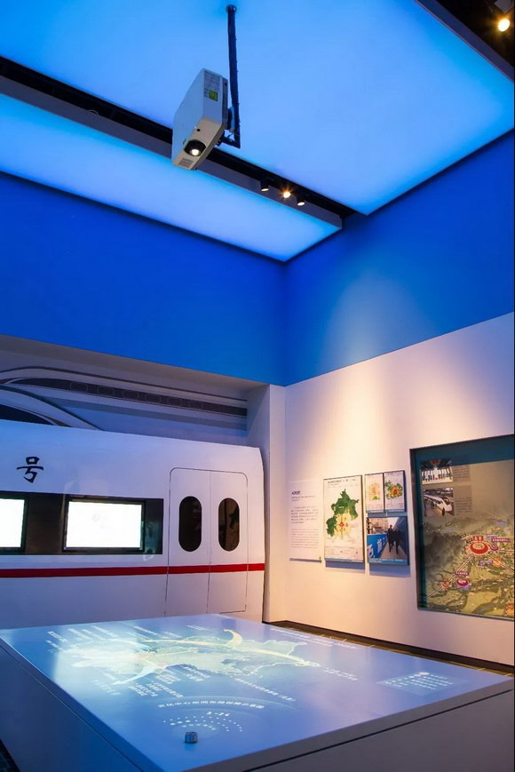 由PA653UL+向6平方米的桌面垂直投射畫面,并且可以桌面互動,通過旋鈕來切換場景,主要展示了祖國近幾年的輝煌成就。增添了互動的趣味性。