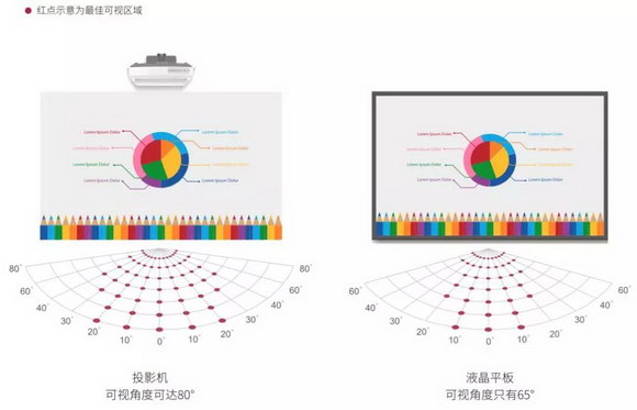 可視角度上,光峰投影比大屏一體機(jī)多15°,保障兩邊和側(cè)面的學(xué)生看見清晰的教學(xué)內(nèi)容。大幅度提高老師的授課效率,節(jié)約時(shí)間,實(shí)現(xiàn)教學(xué)資源更加的公平。
