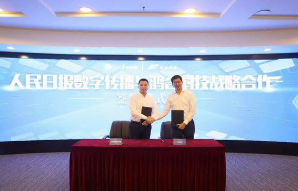 【鴻合科技董事長王京與人民日報數字傳播董事長兼總經理徐濤簽署戰略合作】