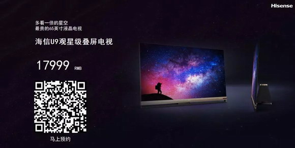 據悉,國內推出的海信U9疊屏電視售價為17999元,其上市也將改寫高端電視的格局,成為消費者在超高清時代新的選擇。