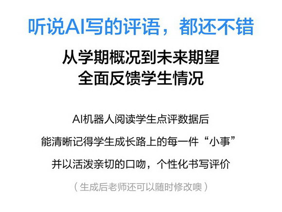 每到期末,老師總是忙得不可開交。各種總結(jié)工作之外,學(xué)生的綜合素質(zhì)評(píng)價(jià)也是一大難題。為幫助老師更高效、高質(zhì)地完成評(píng)價(jià)工作。班級(jí)管理工具“班級(jí)優(yōu)化大師”,用人工智能技術(shù)對(duì)3年來累積的6億多條學(xué)生評(píng)價(jià)數(shù)據(jù)進(jìn)行深度學(xué)習(xí),借助AI技術(shù),幫助老師寫評(píng)語。