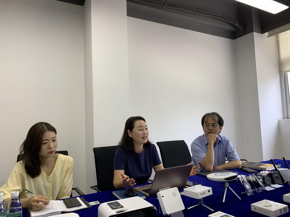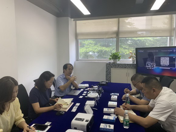 對此,7月4日,2019視聽行業萬里行:萬里牽行 渠道下沉 -------AV生態之走進企業第88站,中投傳媒·視聽會秘書長劉景衛、副秘書長沈一波攜中投傳媒主編走進炬力北方微電子有限公司,并受到炬力北方方案研發中心技術長李總、產品經理陳總、市場部毛總的熱情接待,雙方就投影行業發展進行了深入交流探討。