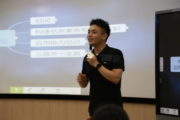 “老師,剛剛那個功能可以再講一遍嗎?”老師們對希沃白板、班級優化大師等信息化教學工具產生濃厚的興趣,即使培訓課結束,仍在臺下不斷積極提問。