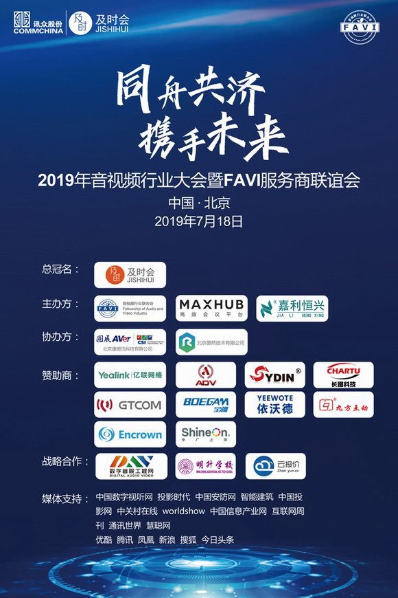 "同舟共濟、攜手未來”2019年音視頻行業(yè)大會暨FAVI服務商聯(lián)誼會,于2019年07月18日順利在北京黃河京都會議中心成功舉辦。300余名行業(yè)精英齊聚一堂、大咖云集。知名品牌介紹前沿科技,著名專家分享成果經(jīng)驗。還有來自媒體的觀察,分析行業(yè)前瞻。