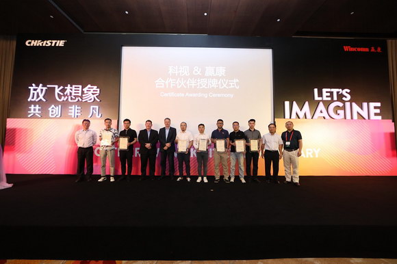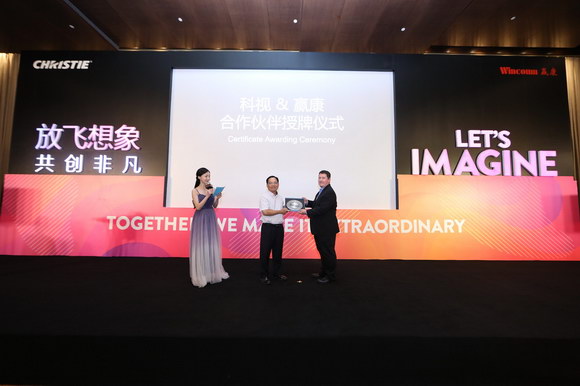 大會現場,科視商用與娛樂事業部產品研發全球執行總監紀懷賦博士、科視內容管理解決方案業務總監Mr.Mike Steinbrecher圍繞著“放飛想象,共創非凡”的主題,進行了精彩的演講。贏康副總經理楊英俊先生就投影技術與贏康提供的技術服務等方面進行了分享。