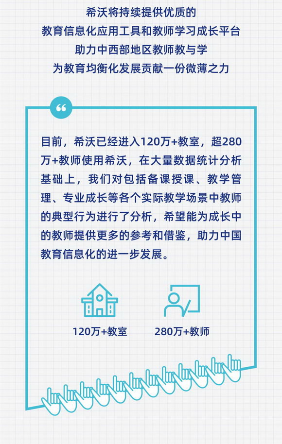 恰逢希沃十周年之際,希沃教育研究院聯合教育均衡化發展聯盟發布了《交互式多媒體教學環境下K12教師信息化教學行為分析報告》,基于海量希沃數據,全方位洞察信息化教學發展趨勢和特征,進一步助力教師成長。