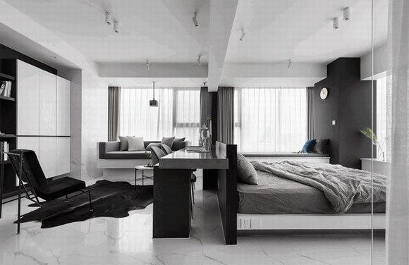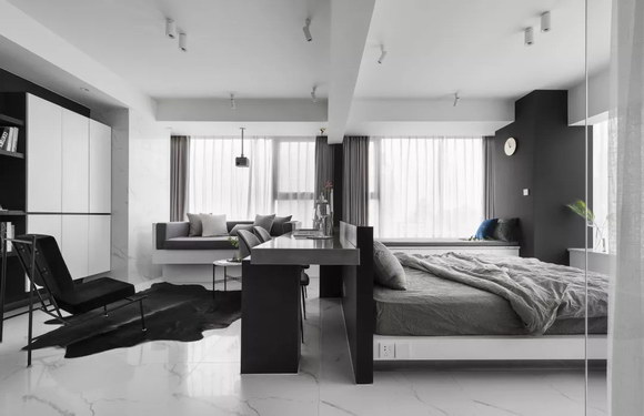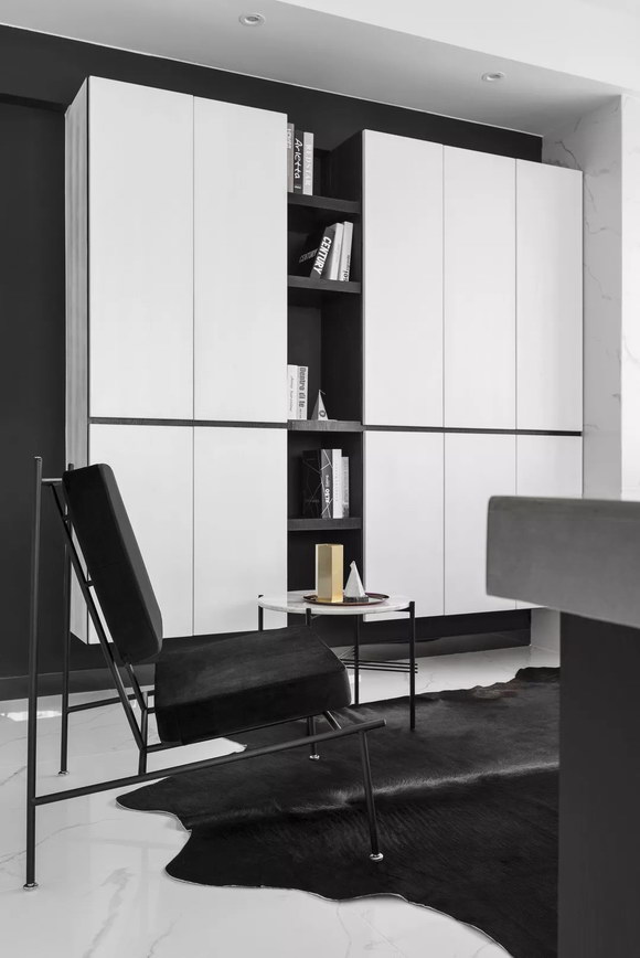 設計師解決辦法:整體色調統一在黑白灰調內,室內線條以直線為主。兩大要素基本可以保證風格純正。