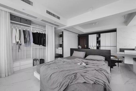 臥室臨近廚房,通過玻璃衣櫥讓廚房與臥房各自獨立又互不影響。