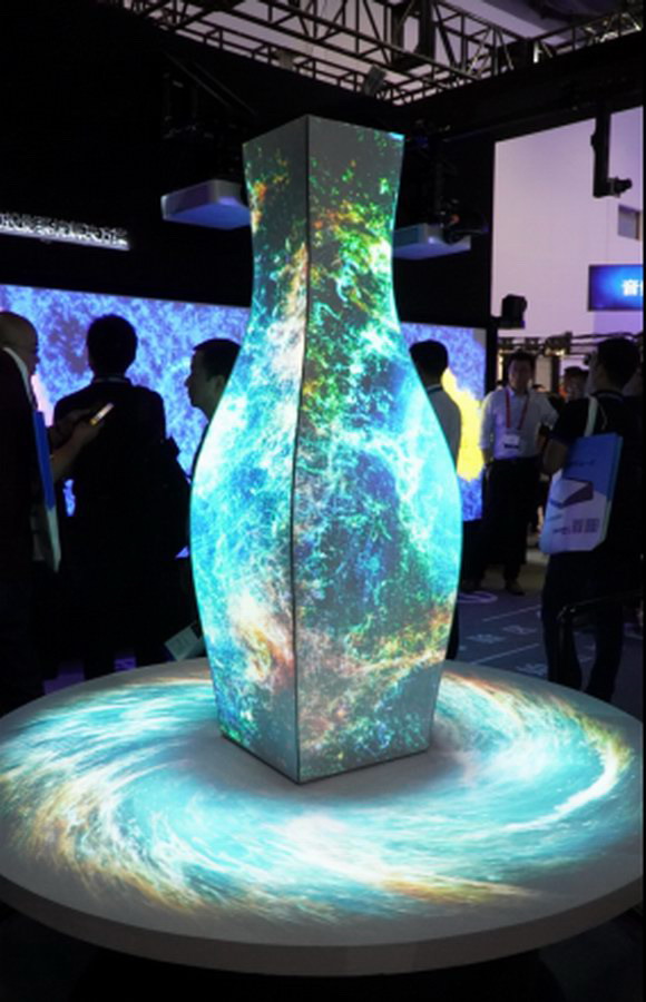 展區中央,索尼通過3D映射投影技術,將一個普通的白色花瓶打造的變幻莫測,時而熊熊烈火燒制瓷器,時而筆墨丹青蝴蝶輕舞。本展項使用了兩臺12000流明的VPL-F1200ZL和兩臺6100流明的VPL-F636HZ的索尼激光工程投影機。其中,VPL-F1200ZL型號是索尼激光工程投影機的旗艦型號,擁有“真實創作”功能和WUXGA分辨率,采用光學補償部件,在保持亮度穩定的前提下能投射出色彩靈動的圖像,不畏強光,輕松獲得明亮精準的高對比度畫面。